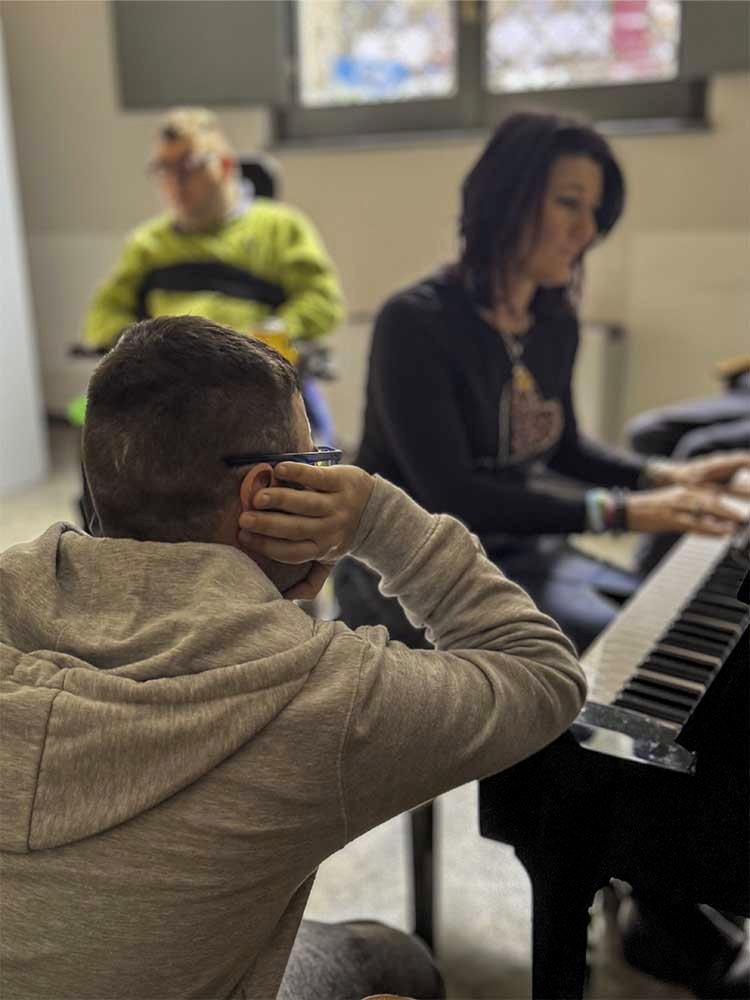 Scalino dopo scalino, incontriamo storie e realtà come il Centro Diurno Sì e Coser Together di Falconara di Cooss Marche, deciso a camminare, mano per la mano, con noi per creare un’orchestra che rappresenti tutti e dimostri che la musica abbatte ogni ostacolo!